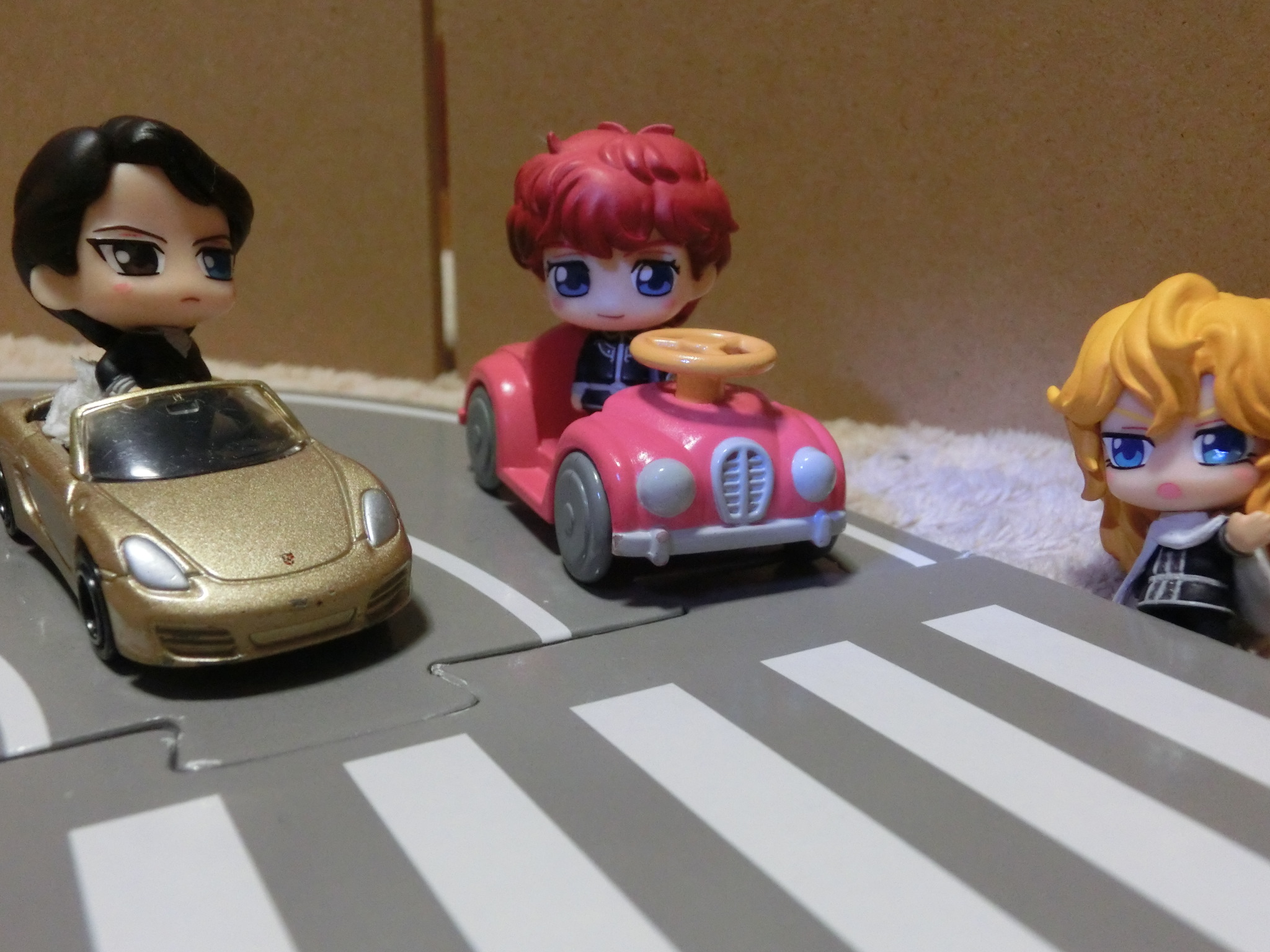 黒「どうだ赤毛の相棒、カイザーを賭けて俺と勝負してみるか?」 赤「ラインハルトさまは、賭け事の対象などではありません」 黒「フフフ、俺と俺のゴールドポルシェが怖いのか?」 金「位置について~ ヨーイ・・・」